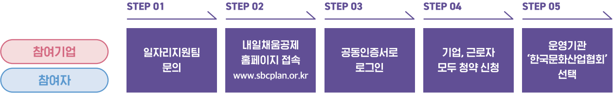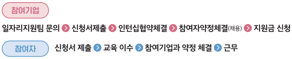 - 참여자 : 참여신청서, 개인정보 수집·이용·제공에 관한 동의서, 근로계약서(사본), 건강보험 자격득실확인서(근로자)